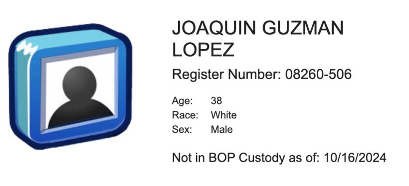 Joaquín Guzmán López, uno de los hijos de Joaquín ‘El Chapo’ Guzmán, pudo haber salido de prisión de Estados Unidos, pues no se encuentra registrado en la Agencia Federal de Prisiones (BOP, por sus siglas en inglés).